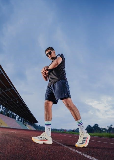 A comprehensive warm-up is crucial before each sprint session‚ preparing muscles and the nervous system for intense activity. Begin with 5-10 minutes of light cardio‚ like jogging‚ followed by dynamic stretching – leg swings‚ arm circles‚ torso twists – increasing range of motion.