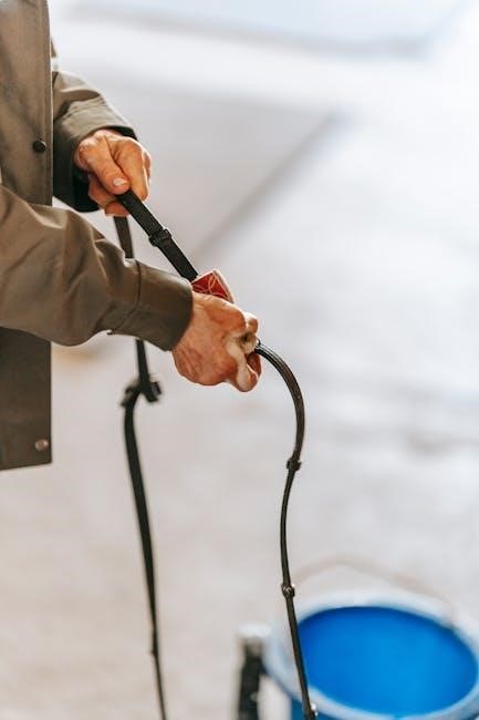 Ensure all connections are tight to maintain optimal suction. The dust bin is pre-installed, but verify it’s correctly seated. If removal is necessary for cleaning, it easily detaches with a simple release mechanism.
