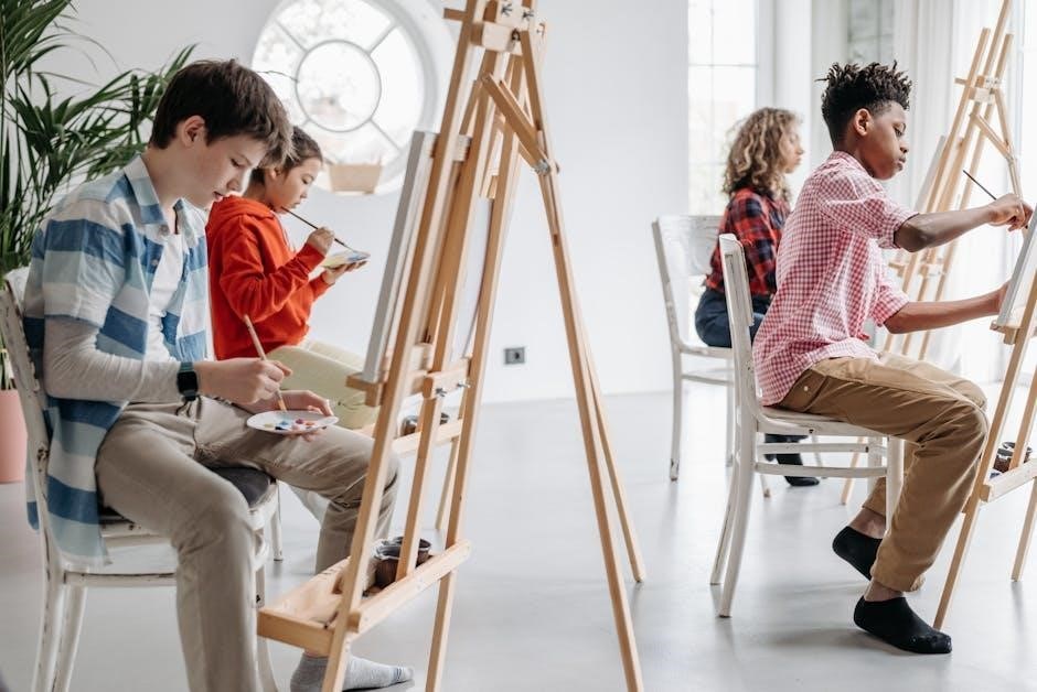 Younger students benefit from playful, sensory-focused activities; PDF resources should include guided imagery with simple narratives and shorter durations. Body scan meditations can be adapted into ‘animal walks,’ encouraging mindful movement.