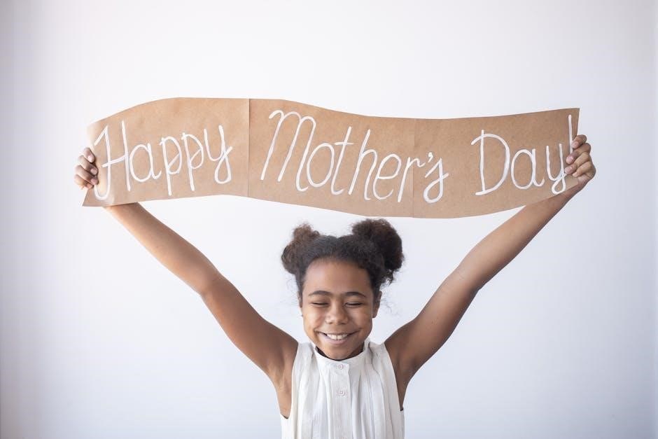 Truly unique and heartwarming, printable PDF Mothers Day cards showcasing children’s artwork are an incredibly personal gift. These cards transform a child’s creativity into a cherished keepsake for Mom; Many templates allow space for a drawing, painting, or even a handwritten message directly from the little ones.